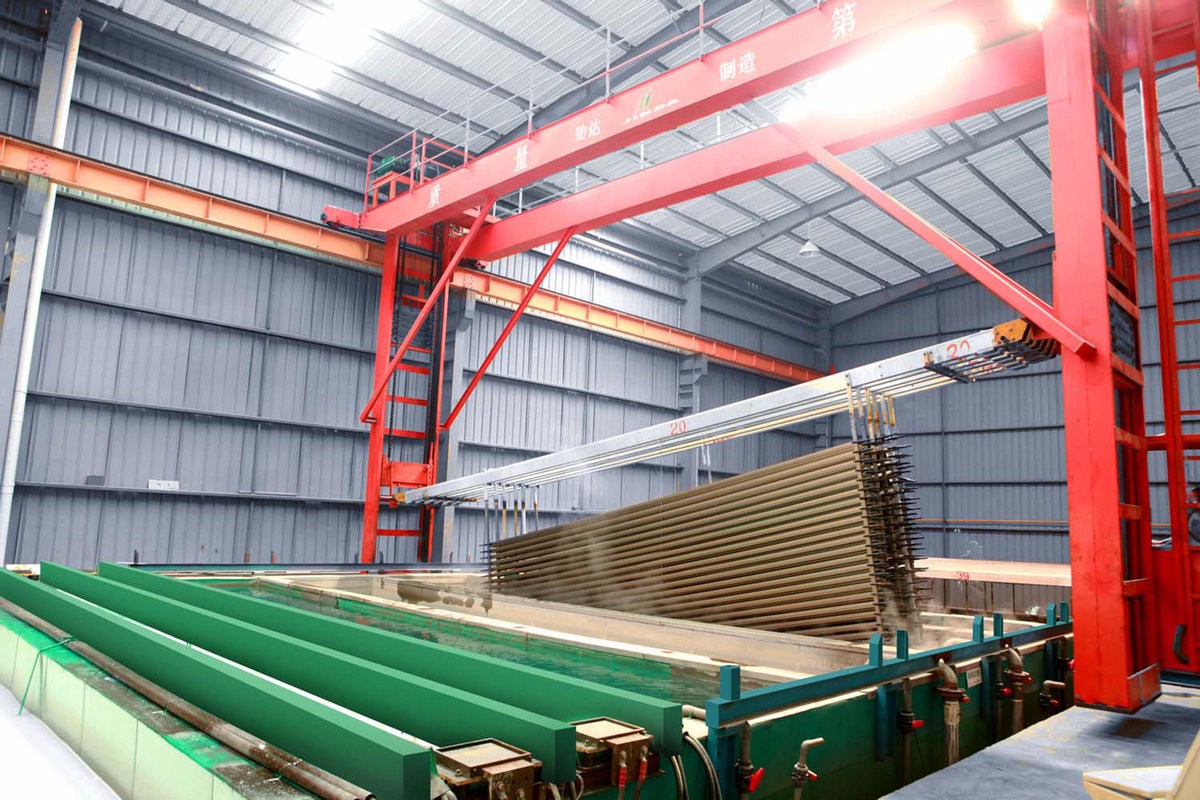 Equipped with 2 aluminum rod casting production lines, 11 aluminum extrusion machines, 1 electrophoresis oxidation line, 1 wood grain and coating production lines, 1 semi-automatic packaging systems.